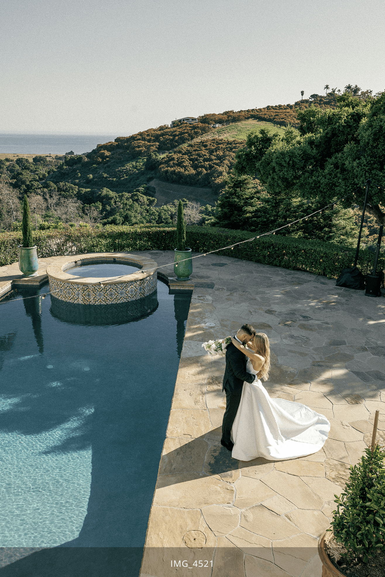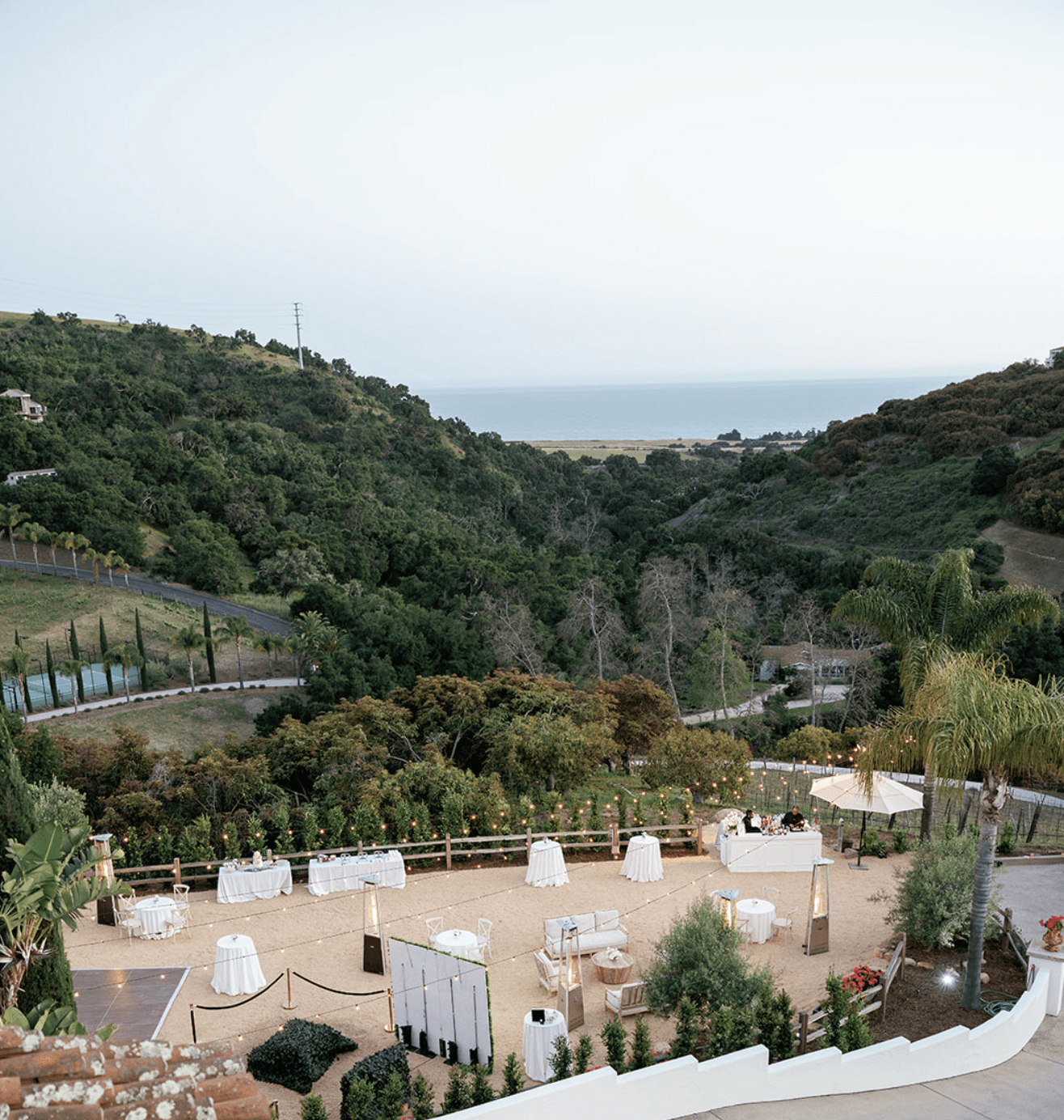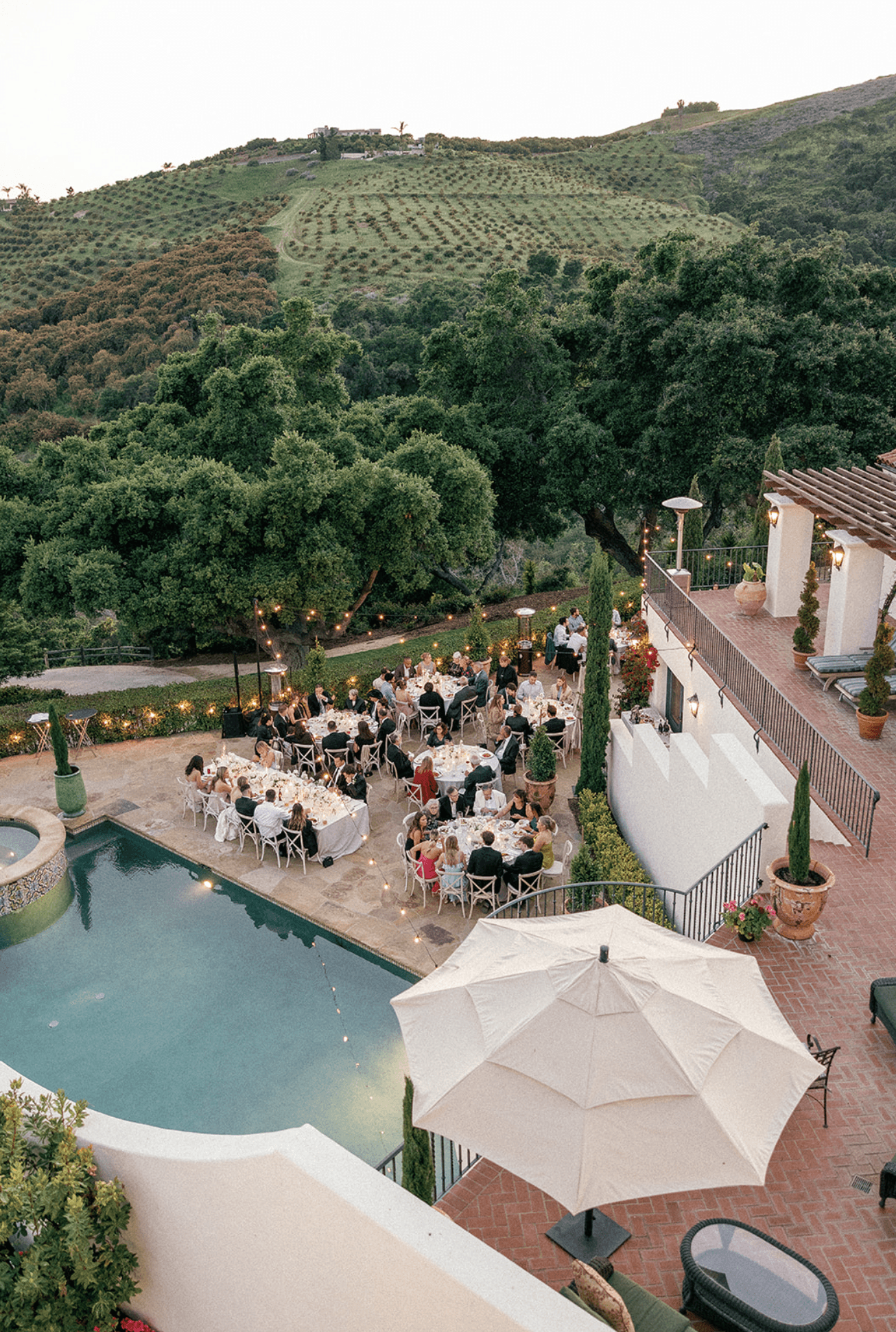 Lush, thoughtfully landscaped grounds provide effortless movement from ceremony to cocktail hour to reception, allowing the day to progress naturally. As the sun lowers, golden-hour light washes across the terraces and gardens, opening to uninterrupted horizons and a quiet, cinematic sense of place.