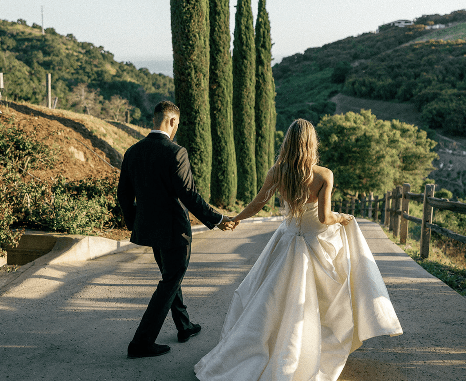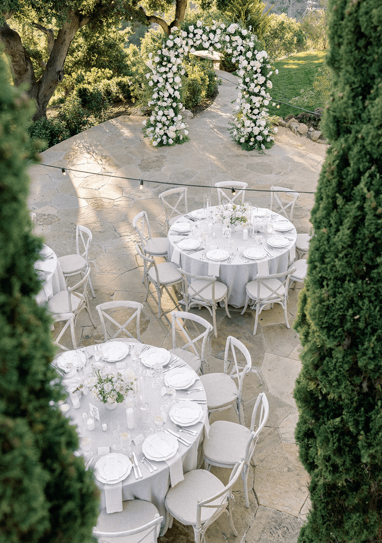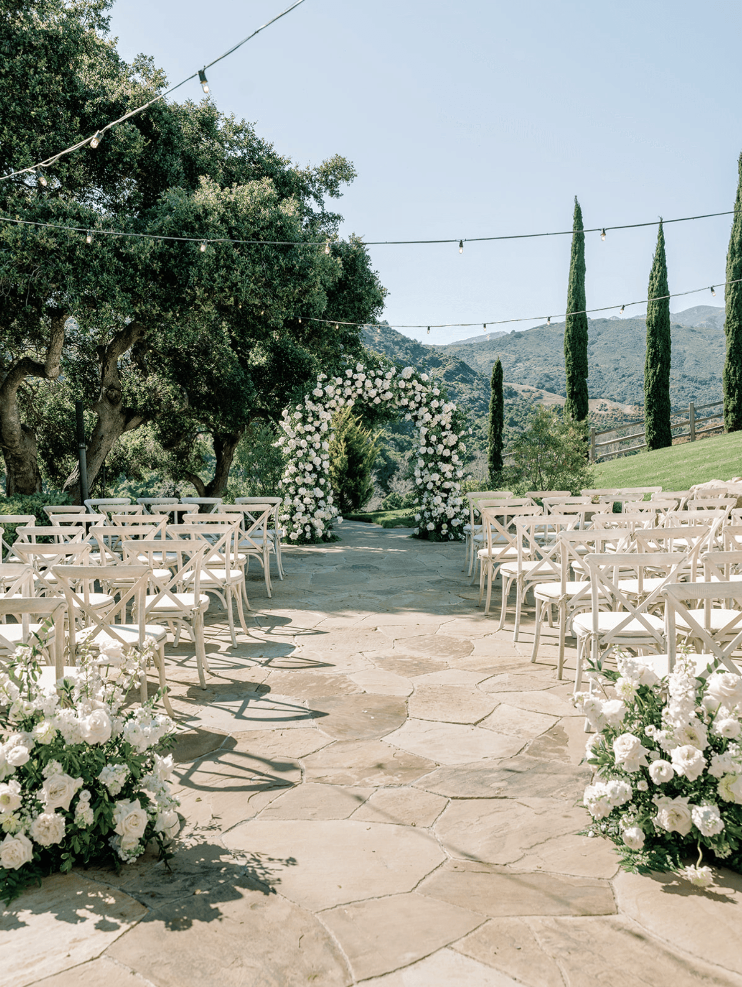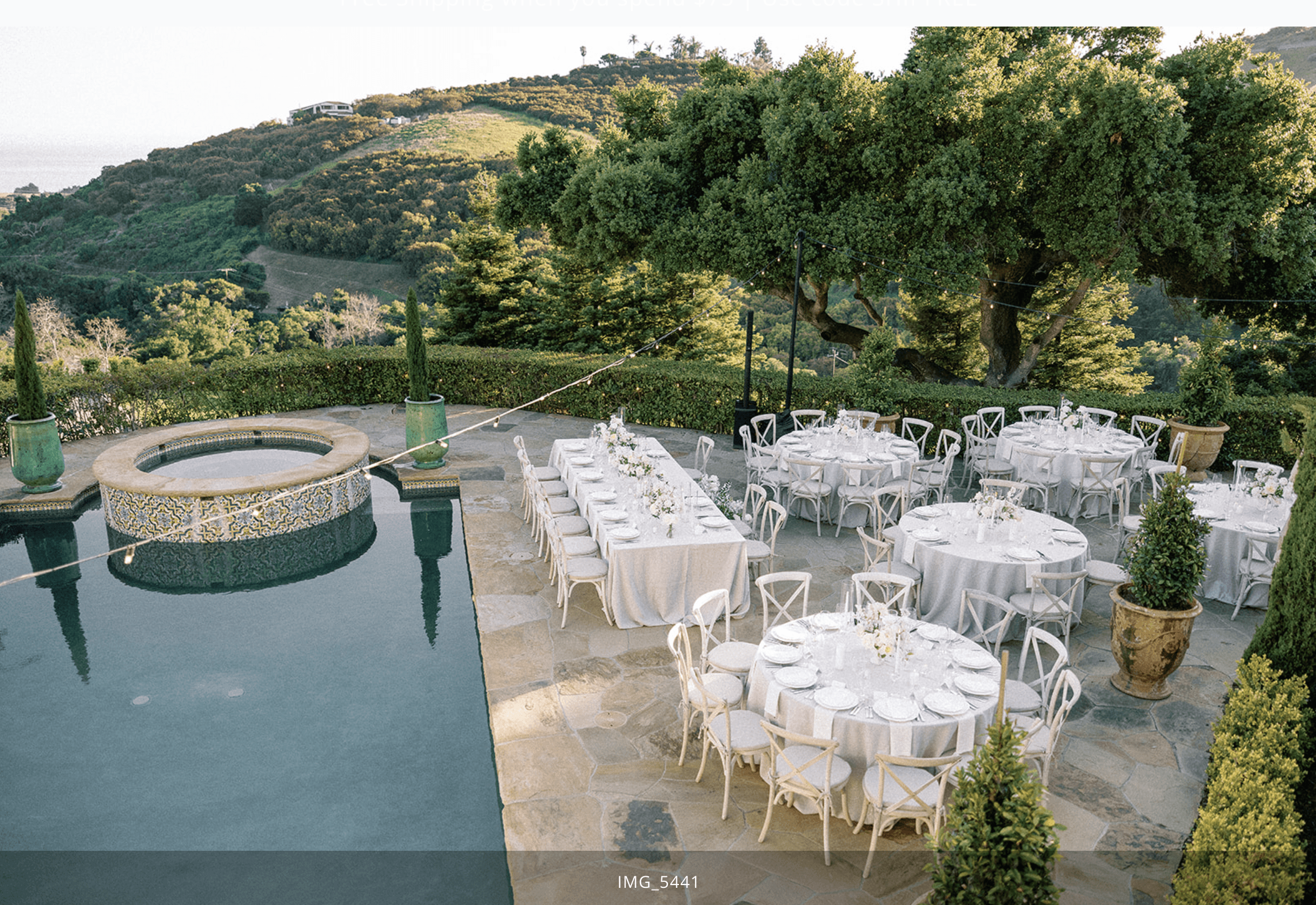 Lush, thoughtfully landscaped grounds provide effortless movement from ceremony to cocktail hour to reception, allowing the day to progress naturally. As the sun lowers, golden-hour light washes across the terraces and gardens, opening to uninterrupted horizons and a quiet, cinematic sense of place.